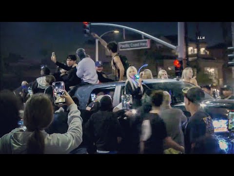 HUNTINGTON BEACH, CALIFORNIA – “Adrian’s Kickback” was an illegal meeting as party-goers hurled glass bottles and fireworks in direction of police. No accidents had been reported however police shot much less deadly pepper bullets at crowds in an effort to disperse them. The occasion which has been marketed on social media introduced over a thousand folks to the native seaside. Police have declared an emergency curfew for the in a single day hours because of the exercise.