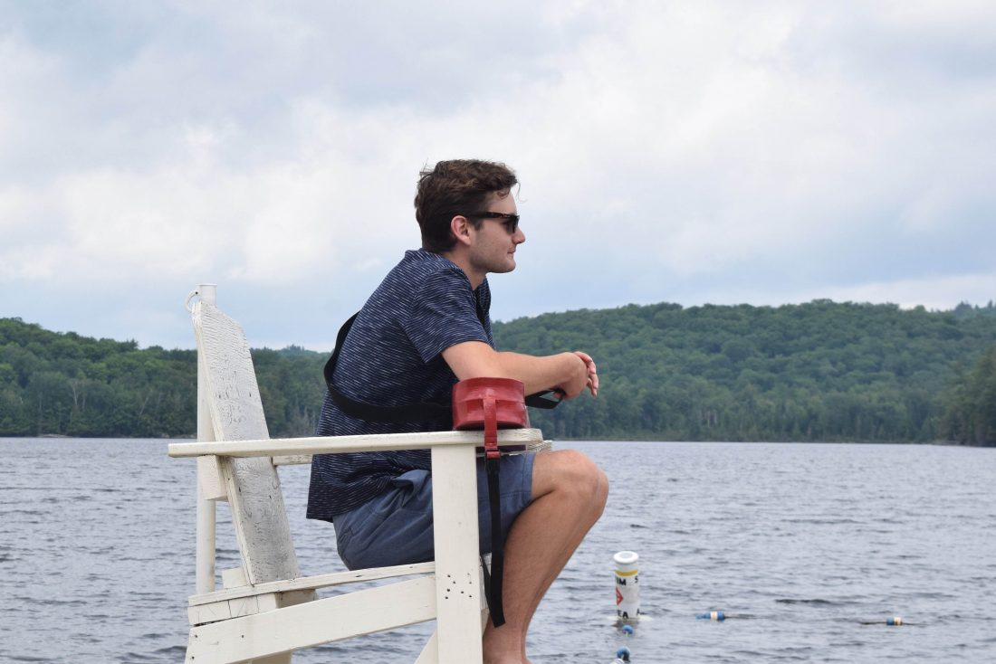 Lifeguard Simon Thill awaits beachgoers at Lake Colby Seashore after he opens for the day on Wednesday.